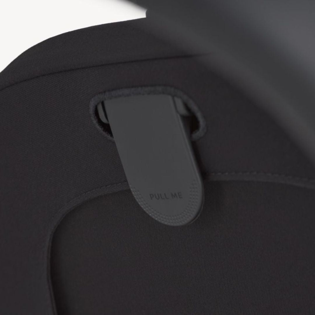 Za varnost skrbi integriran 5-točkovni varnostni pas z inovativno magnetno zaponko, ki omogoča hitro in enostavno pripenjanje otroka brez nepotrebnega truda. XXL zaščitna strehica z UPF 50+ zaščito nudi popolno zavetje pred soncem, vetrom ali rahlim dežjem, vgrajeni prezračevalni paneli pa skrbijo za optimalen pretok zraka v vročih dneh.